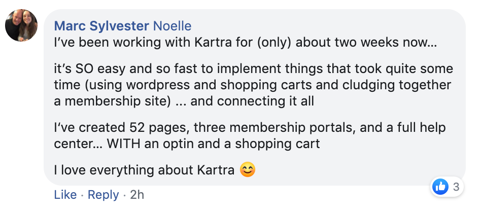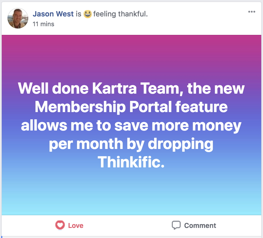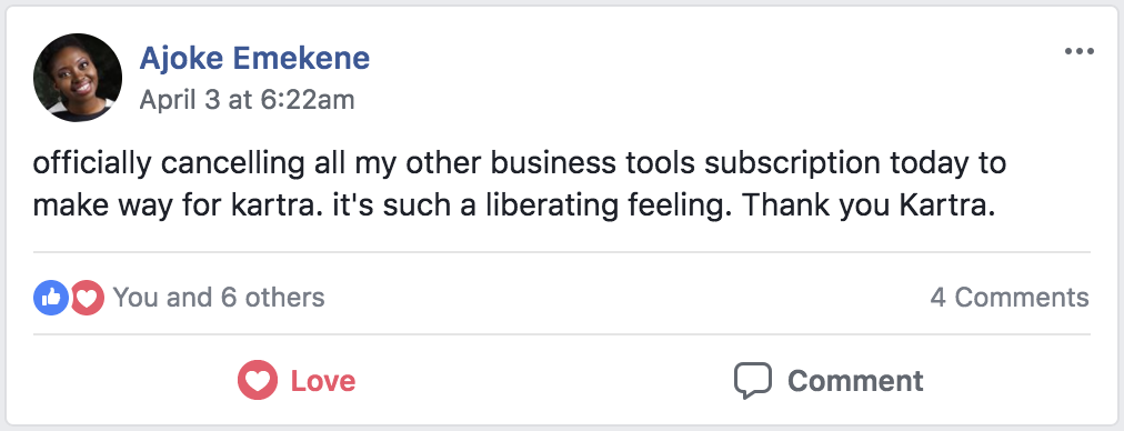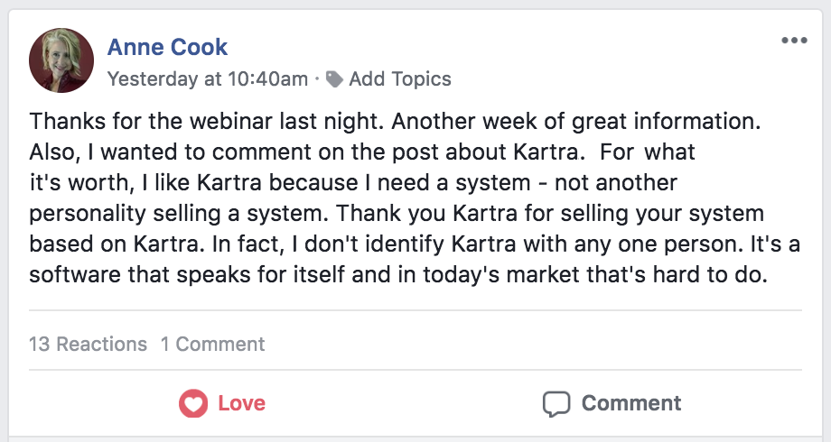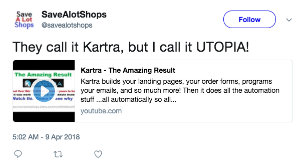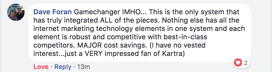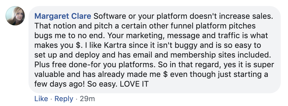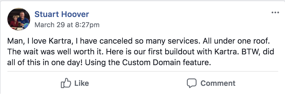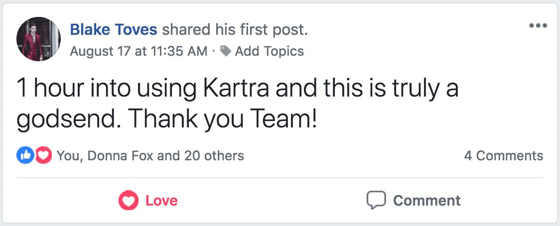 * DISCLAIMER: All testimonials displayed below have been unsolicited, unpaid for, and have not been edited in any way. They all come from actual Kartra users, and they have been collected directly from Social Media.