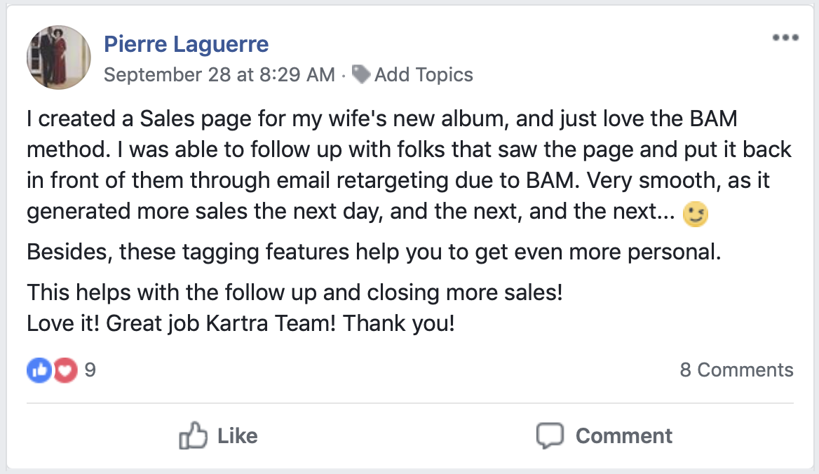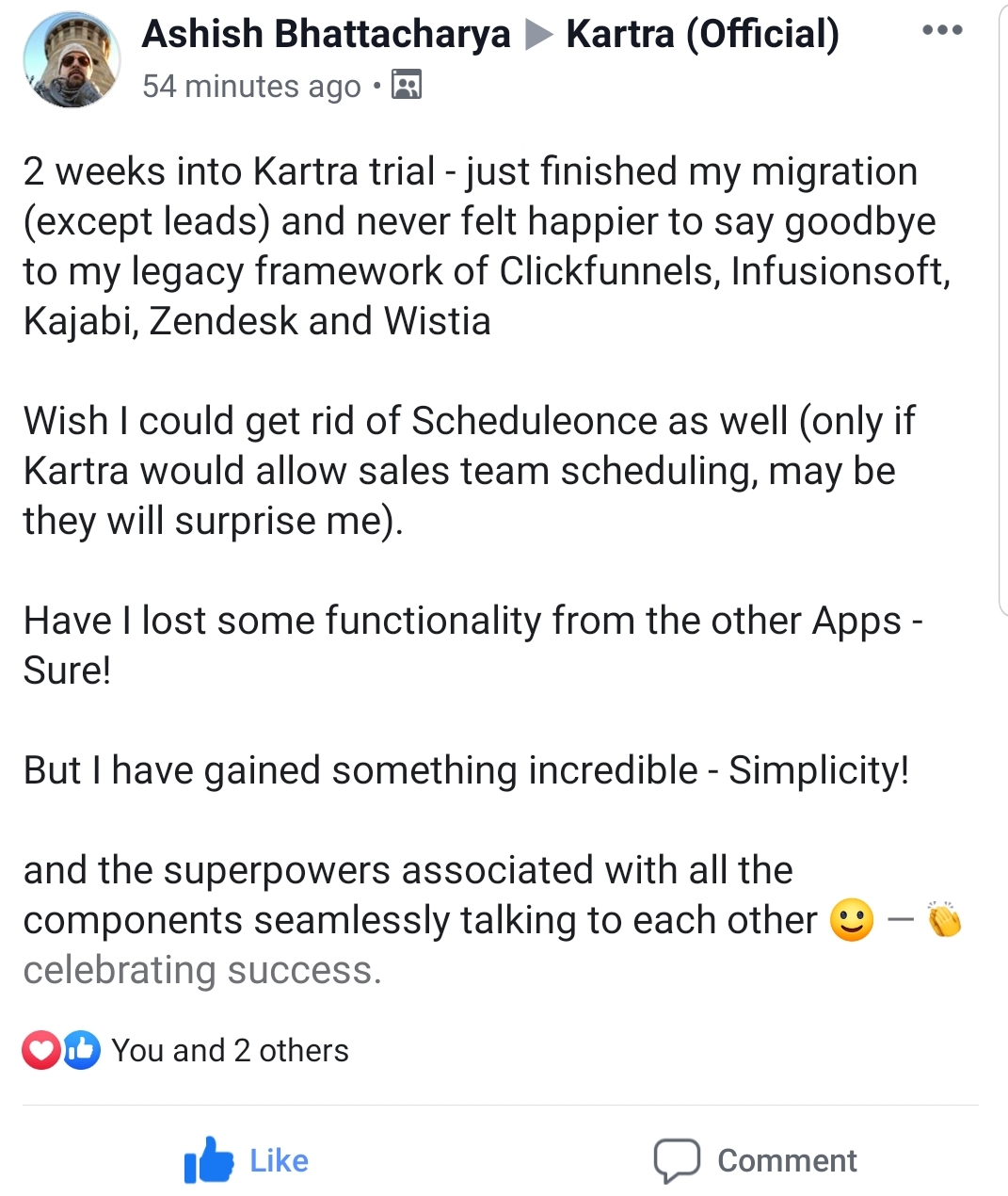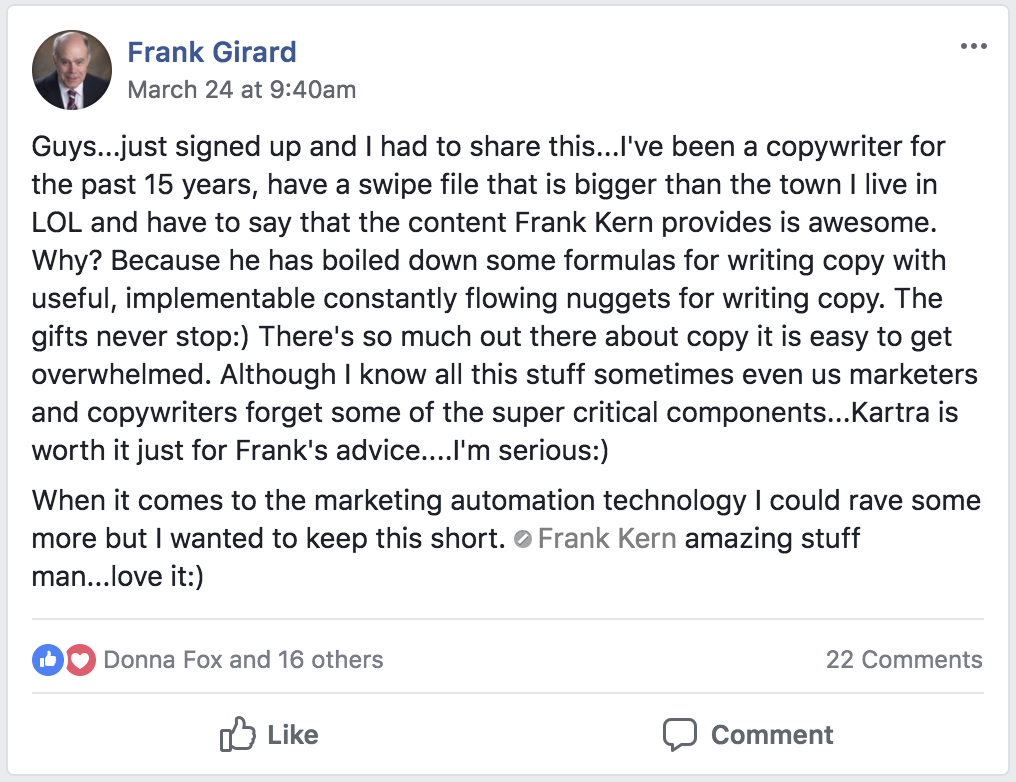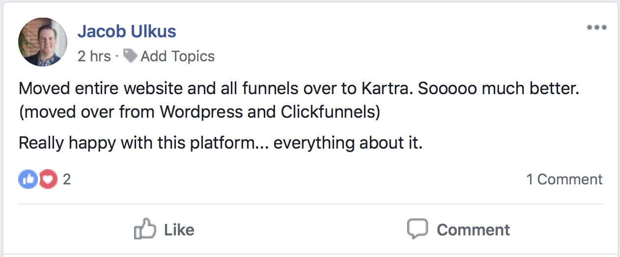 * DISCLAIMER: All testimonials displayed below have been unsolicited, unpaid for, and have not been edited in any way. They all come from actual Kartra users, and they have been collected directly from Social Media.